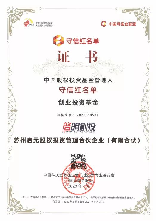 由中國科技金融促進會風險投資專業(yè)委員會和中國母基金聯(lián)盟主辦,母基金研究中心協(xié)辦的“2020中國母基金峰會”日前在深圳舉辦,峰會重磅發(fā)布2020中國母基金峰會年中通報表揚名單。啟明創(chuàng)投榮膺“2020 VC基金最佳回報TOP50”,同時獲頒第二批中國股權(quán)投資基金管理人守信紅名單證書。