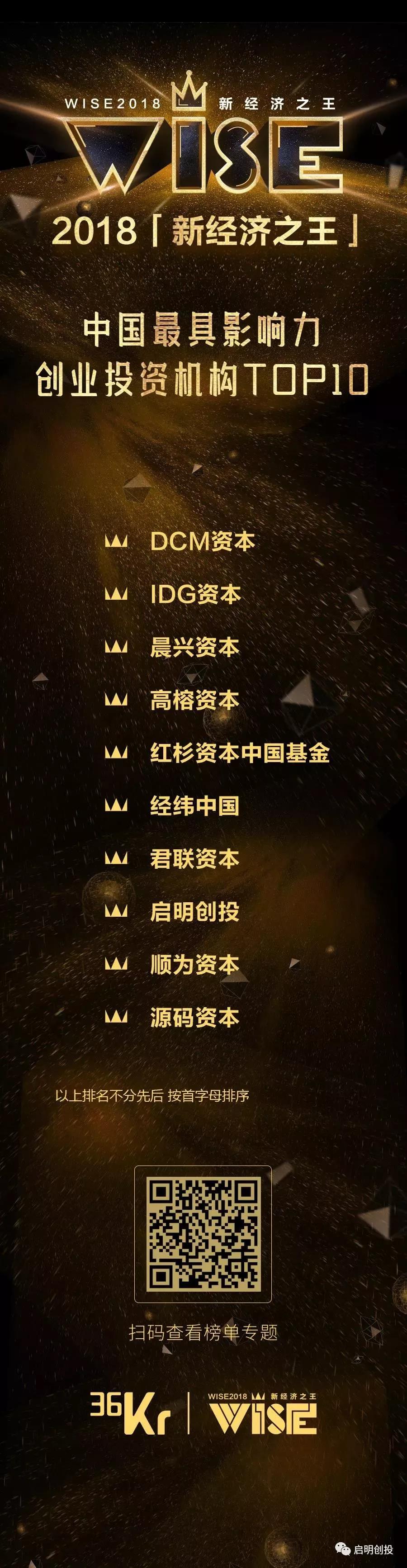 近期,由36氪主辦的新經(jīng)濟之王——WISE2018新商業(yè)大會上,啟明創(chuàng)投獲評“新經(jīng)濟之王”中國最具影響力創(chuàng)業(yè)投資機構(gòu)Top10。