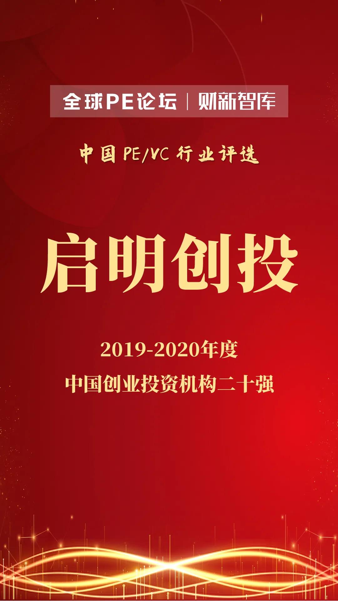 啟明創(chuàng)投獲頒2019-2020年度中國創(chuàng)業(yè)投資機構(gòu)二十強。