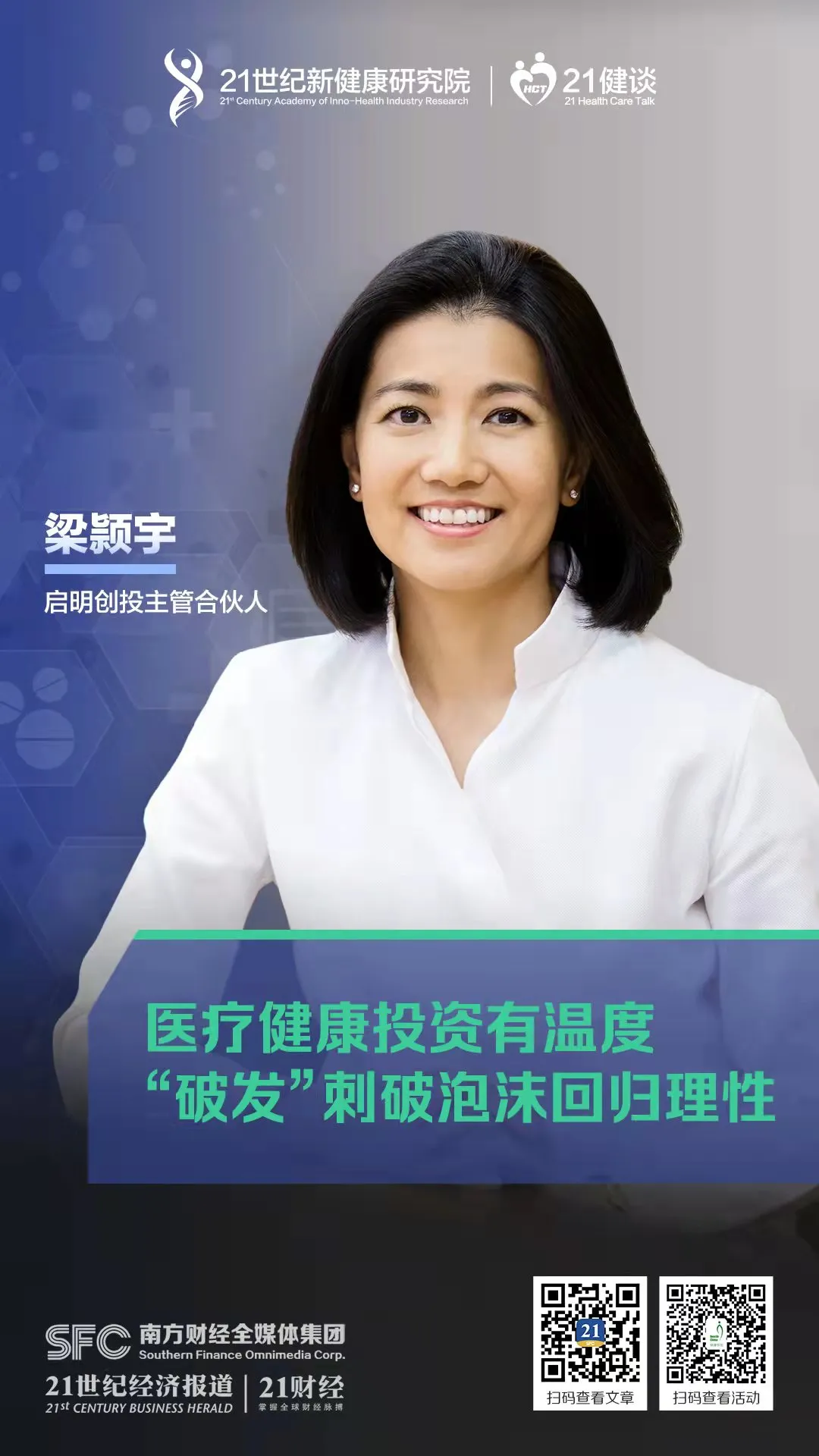 面對醫(yī)療健康賽道爆紅,備受資本追捧的現(xiàn)狀,歷經(jīng)過2000年互聯(lián)網(wǎng)行業(yè)泡沫投資的梁颕宇強(qiáng)調(diào),醫(yī)療健康行業(yè)也會有泡沫,實(shí)際上一些新股的破發(fā)就是對市場的教育,資本投資需要回歸到理性角度。
