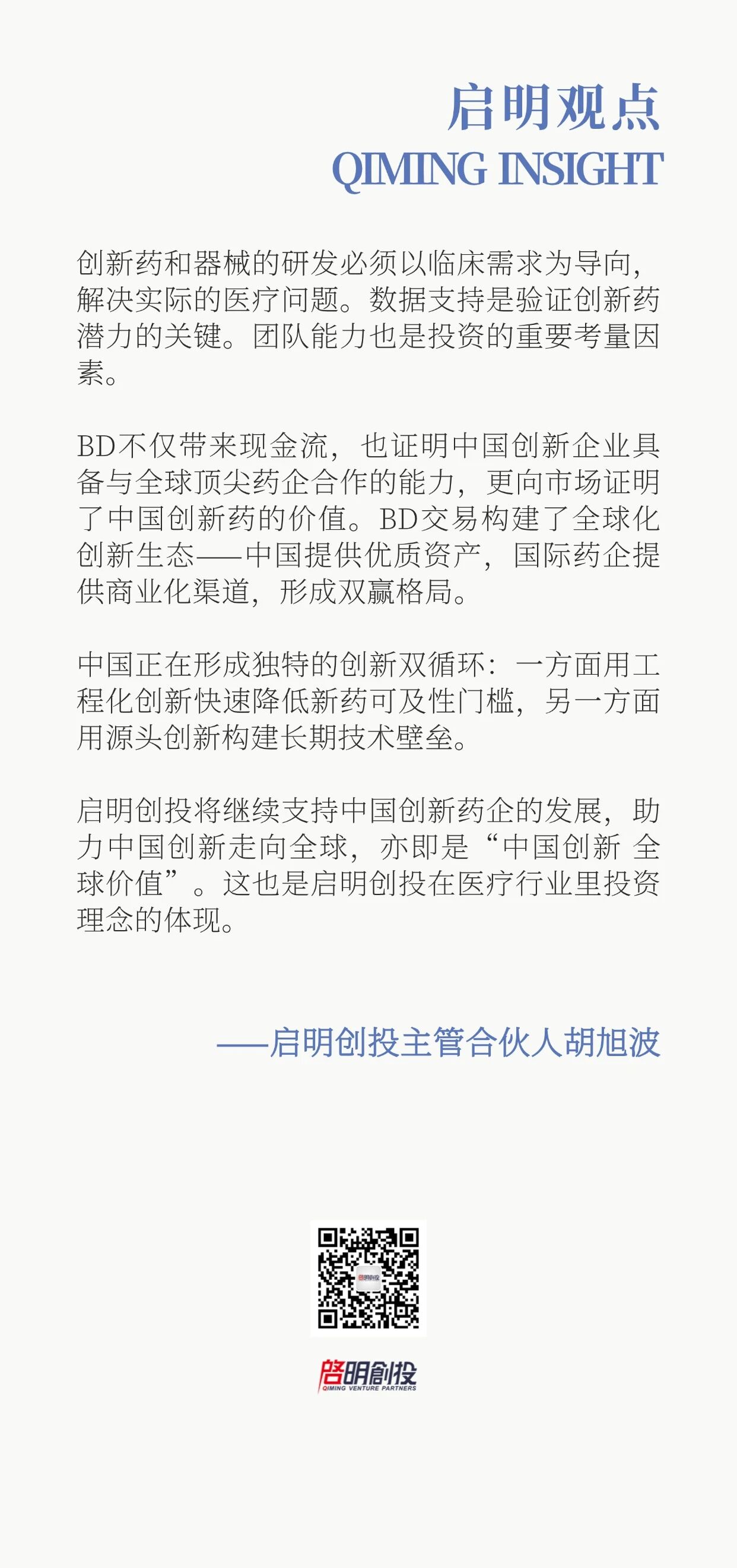 “我們希望通過投資中國創(chuàng)新藥企,推動中國創(chuàng)新走向全球,造福全球患者?!焙癫ㄖ赋觯瑔⒚鲃?chuàng)投將繼續(xù)支持中國創(chuàng)新藥企的發(fā)展,助力中國創(chuàng)新走向全球,亦即是“中國創(chuàng)新 全球價值”。這也是啟明創(chuàng)投在醫(yī)療行業(yè)里投資理念的體現(xiàn)。