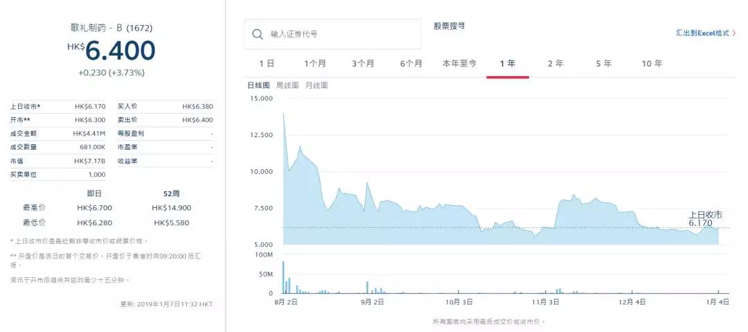 尷尬的是,歌禮制藥、百濟神州、華領醫(yī)藥赴港上市后,均出現(xiàn)破發(fā)。以歌禮制藥為例,2018年8月1日,歌禮制藥-B在港交所掛牌上市,發(fā)行價為14港元,上市前三日股價一路下跌,累計跌幅達28%。最低跌至11月1日的5.87港元,較發(fā)行價跌幅達58%。創(chuàng)新藥企業(yè)在二級市場“遇冷”,甚至引發(fā)是否會如同2000年互聯(lián)網泡沫破滅的擔憂。