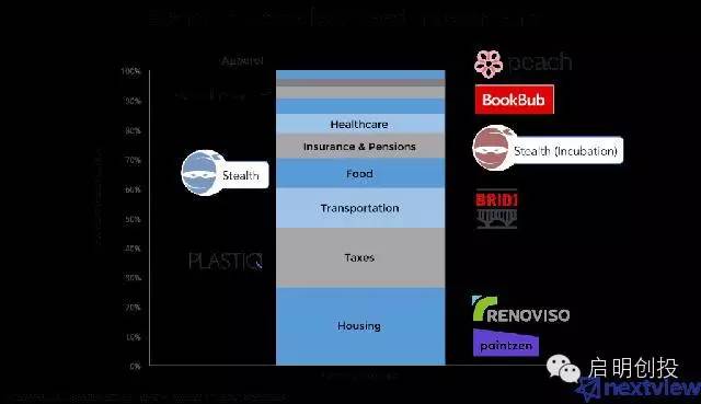 在NextView,我的合伙人和我慎重地遵循著一幅投資中的消費者地圖。“緊跟資金的流向”是我們的投資策略,該策略占了我們所有投資組合的50%之多。開始的時候,我們將美國消費者支出看作是虛假財富地圖,然后找出創(chuàng)企能夠卷起市場風云的機會。我們的結(jié)論很簡單,但也很重要,那就是:當某創(chuàng)企把發(fā)展方向放在消費者支出比重最大的領(lǐng)域時,它的市場影響力一定會擴大。