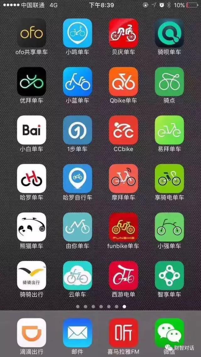 ▲各色共享單車APP