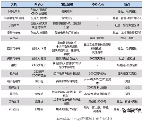 與此同時(shí),在資本市場(chǎng),投資機(jī)構(gòu)也似乎并未表現(xiàn)出對(duì)共享電單車過(guò)多的興趣,與共享單車動(dòng)則上億美金的融資相比,目前共享電單車十幾家創(chuàng)業(yè)公司融資總額只有兩三億人民幣,而且國(guó)內(nèi)主流VC幾乎全部缺席。