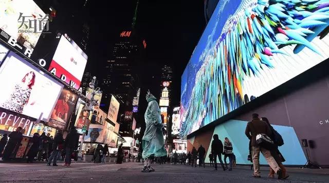 美國紐約時報廣場隨處可見的巨幅廣告牌。(新華社/圖)