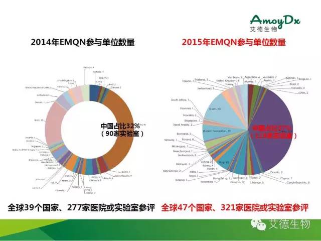 2015年12月11日,歐洲分子基因診斷質(zhì)量聯(lián)盟(European Molecular Genetics Quality Network, EMQN)公開發(fā)布其2015年EMQN肺癌檢測室間質(zhì)評結(jié)果。由艾德生物自主研發(fā)生產(chǎn)的ADx?系列基因檢測產(chǎn)品憑借其優(yōu)異的產(chǎn)品性能及廣泛的使用范圍,在2015年的EMQN室間質(zhì)評中繼續(xù)拔得頭籌,產(chǎn)品使用率蟬聯(lián)第一,檢測的準(zhǔn)確率99.4%。