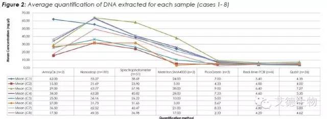 重視檢測前的核酸質(zhì)控 本次參加EMQN的311家實驗室使用商業(yè)化提取試劑盒分別對檢測樣本進(jìn)行DNA提取和質(zhì)控,相比2014年增加了64家。結(jié)果顯示92%的實驗室DNA定量差異較大,最大可達(dá)14倍,熒光定量的方法一致率及可靠性更高。
