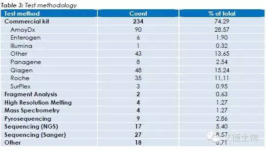 在所有315家參與EGFR/KRAS/BRAF基因檢測的實驗室評比中,艾德產(chǎn)品延續(xù)了去年的優(yōu)異成績,在所有商業(yè)試劑盒及實驗室方法中的使用率依然最高,約28.57%,在商業(yè)試劑盒中占38.5%。
