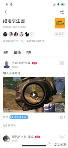 “圈”是由暴雞電競首創(chuàng)的“所見即所得”式互動(dòng)社區(qū)?!芭e個(gè)例子,游戲玩家在直播平臺(tái)或其他社區(qū)類產(chǎn)品看到大神秀‘五殺’操作的視頻,要么不可能跟主播一起開黑,要么根本不知道大神是誰。而在暴雞‘圈’里看到的短視頻或圖文,發(fā)布者即是大神本人,玩家能直接進(jìn)行溝通關(guān)注,滿足社交需求,雙方還可以回到游戲內(nèi)進(jìn)行教學(xué)指導(dǎo)或娛樂陪玩。”暴雞電競CEO官志遠(yuǎn)說。