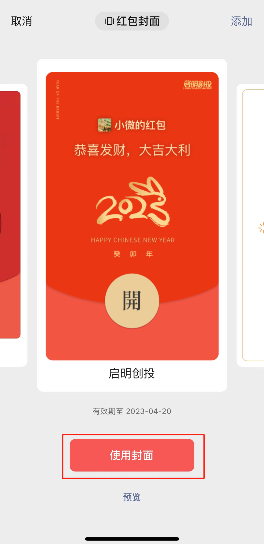 第三步:選擇“啟明創(chuàng)投”紅包封面