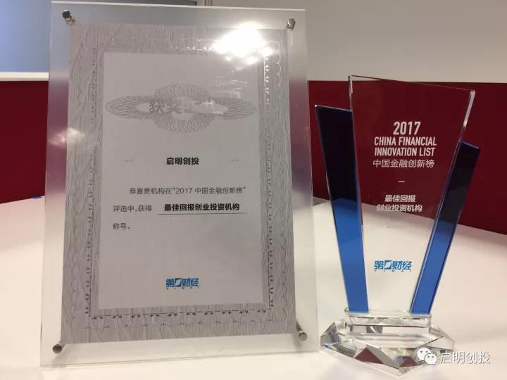 為表彰近年來在新金融領(lǐng)域取得卓越成就的機構(gòu)和企業(yè),大會整合第一財經(jīng)金融資訊平臺專業(yè)優(yōu)勢,結(jié)合第三方研究機構(gòu)意見和外部專家意見,發(fā)布了2017中國金融創(chuàng)新榜單。啟明憑借在2017年7個IPO上市的突出投資業(yè)績表現(xiàn),一舉榮獲“最佳回報創(chuàng)業(yè)投資機構(gòu)”稱號。