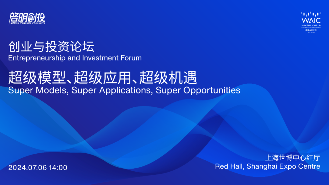 2024年7月6日下午,啟明創(chuàng)投·創(chuàng)業(yè)與投資論壇—超級模型、超級應(yīng)用、超級機遇將在上海世博中心紅廳正式舉辦,本次論壇云集了大語言模型、多模態(tài)模型、具身智能和生成式AI應(yīng)用領(lǐng)域的頂級專家學(xué)者,以及來自海內(nèi)外的杰出創(chuàng)業(yè)企業(yè)、知名投資機構(gòu)等的重磅嘉賓,共同分享大模型的技術(shù)突破,探討大模型的應(yīng)用落地,探索中國科技創(chuàng)新的產(chǎn)業(yè)機會。