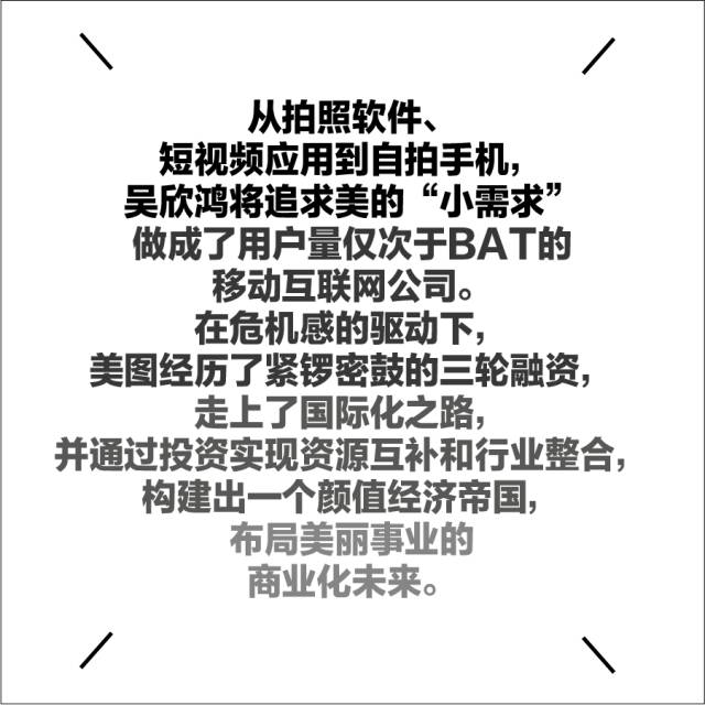 大多數(shù)資金花在了國際化和戰(zhàn)略投資上。美圖今年投資了十幾個(gè)項(xiàng)目,緊密關(guān)注于“美”和“圖”兩條生態(tài)鏈,其中美圖暫時(shí)無力深耕的或者不具備基因的(如O2O)領(lǐng)域,吳欣鴻選擇交給外部團(tuán)隊(duì)。同時(shí),美拍平臺(tái)開放,接入合作伙伴,讓他們圍繞美拍做各種視頻小工具。在未來,吳欣鴻還打算建立一個(gè)“美圖創(chuàng)業(yè)平臺(tái)”,嘗試一些實(shí)驗(yàn)性項(xiàng)目。