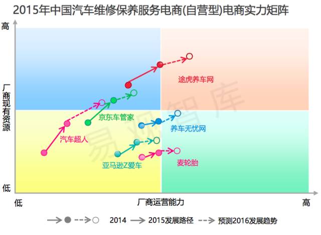 未來,途虎養(yǎng)車網(wǎng)將從以輪胎為主的B2C+O2O自營型電商逐步網(wǎng)汽車后市場全產(chǎn)業(yè)鏈延伸,目前按照訂單數(shù)估計,輪胎、保養(yǎng)、汽車用品的比例為1:1:1,未來會進一步提升利潤空間更大的保養(yǎng)比例。所以,我們可以欣喜的看到,這家最終進入汽車維修保養(yǎng)服務電商的創(chuàng)業(yè)企業(yè),已經(jīng)網(wǎng)點不滿全國,并且資金充足、戰(zhàn)略明確,信心滿滿,前途無量。