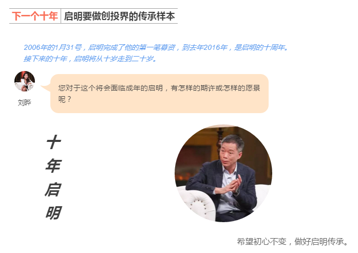 但這恰恰是未來十年的一個挑戰(zhàn):如何不要讓過去的成功,成為包袱。我們每個新的基金,都是從零開始的,從第一個項目開始投,然后一個一個把它做好。