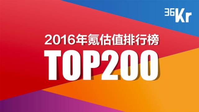 2016年12月7日,36氪在WISE大會(huì)重磅發(fā)布了《2016年氪估值排行榜TOP200》。此榜單涵蓋了在2013年10月到2016年10月間,獲得融資、主營(yíng)業(yè)務(wù)在中國(guó)大陸,且具備TMT行業(yè)屬性的未上市企業(yè)Top200,并給出了相應(yīng)的估值。榜單前三位為螞蟻金服(4827億元)、小米科技(2950億元)及滴滴出行(1889億元),均與去年發(fā)布榜單估值對(duì)比有所上漲。