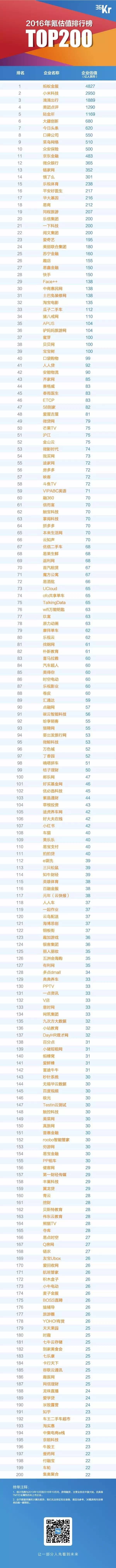 重磅發(fā)布!2016年氪估值排行榜 |啟明投資的16家企業(yè)上榜!