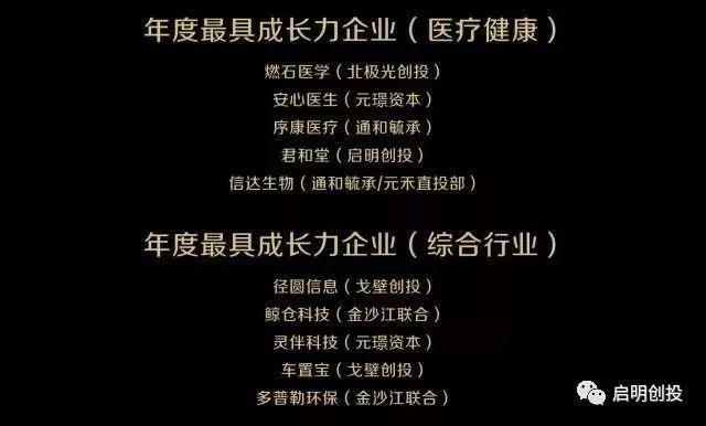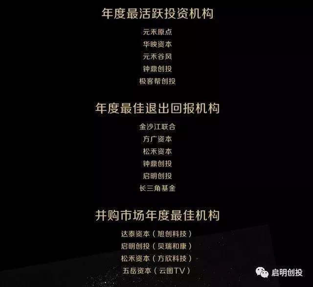 此次榜單頒出企業(yè)類別獎3項,機構(gòu)類別獎5項。啟明憑借今天優(yōu)異突出的退出業(yè)績,橫掃5項大獎,它們分別是:年度最具成長力企業(yè)(TMT行業(yè))——啟明投資企業(yè) 觸寶電話;年度最具成長力企業(yè)(醫(yī)療健康)——啟明投資企業(yè) 君和堂;年度最佳退出回報機構(gòu);并購市場年度最佳機構(gòu);IPO市場年度最佳機構(gòu)。