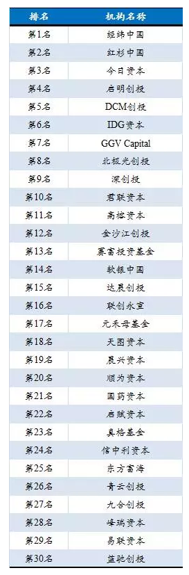 4、2016年中國創(chuàng)業(yè)投資基金(TOP 30)