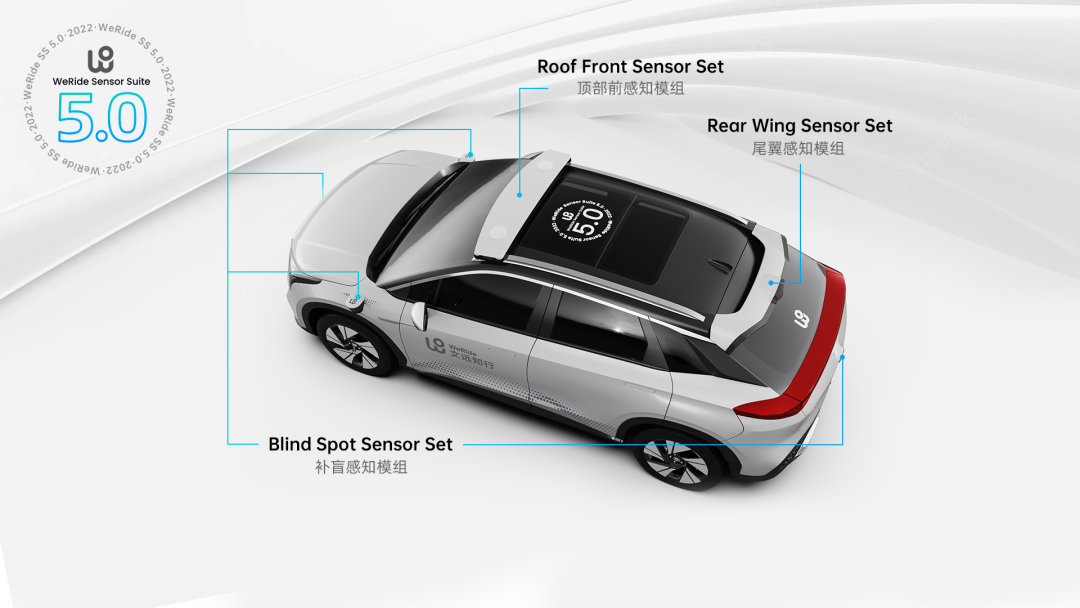 WeRide SS 5.0貫徹文遠(yuǎn)知行“知行相融”的設(shè)計(jì)理念,在外觀設(shè)計(jì)上再次挑戰(zhàn)極限,通過集成化、模塊化和分體式三大手段,以一流的軟硬件技術(shù)實(shí)現(xiàn)強(qiáng)大的智能駕駛。WeRide SS 5.0作為“自動(dòng)駕駛之眼”,擁有12個(gè)攝像頭、7顆固態(tài)激光雷達(dá),共同構(gòu)成6大感知模組,巧妙布局在車身不同位置,讓自動(dòng)駕駛套件真正與汽車融為一體,最大化保留車身原有造型的同時(shí)實(shí)現(xiàn)全方位的強(qiáng)大感知能力。
