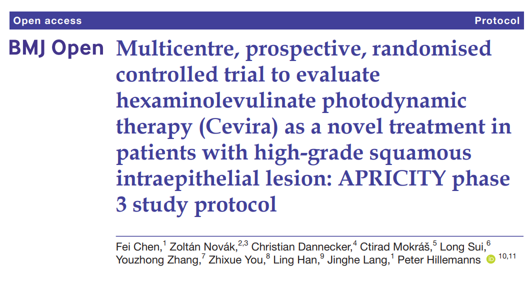 近日,啟明創(chuàng)投投資企業(yè)、專注于泌尿生殖腫瘤的全球化創(chuàng)新公司亞虹醫(yī)藥(688176.SH)宣布其APRICITY研究方案發(fā)表于BMJ Open。APRICITY是一項(xiàng)國(guó)際多中心、前瞻性、雙盲、隨機(jī)對(duì)照的III期研究,旨在進(jìn)一步評(píng)估光動(dòng)力藥械組合產(chǎn)品Cevira?用于治療宮頸高級(jí)別鱗狀上皮內(nèi)病變(HSIL)的有效性和安全性。