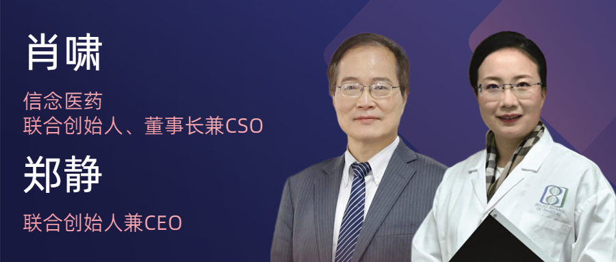 信念醫(yī)藥聯(lián)合創(chuàng)始人、董事長兼首席科學(xué)官肖嘯與聯(lián)合創(chuàng)始人兼首席執(zhí)行官鄭靜