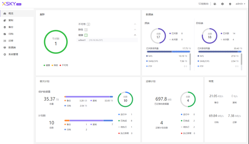 X3DS基于微服務架構,自帶Kubernetes平臺,也支持外部的Kubernetes,部署簡單靈活,具有極大的可擴展性,可以提供非結(jié)構化數(shù)據(jù)的DR(Disaster Recovery,災難恢復),DP(Data Protection,數(shù)據(jù)保護)和DM(Data Migration,數(shù)據(jù)遷移)這三大管理能力,為用戶提供數(shù)據(jù)搬遷(遷移)、關鍵數(shù)據(jù)容災(復制)、降低數(shù)據(jù)總體成本(歸檔)、數(shù)據(jù)的恢復和故障預防(備份)等多種功能。