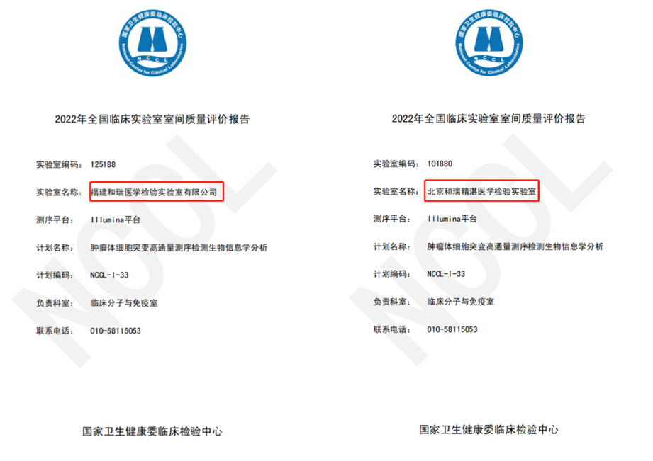 近日,國家衛(wèi)生健康委臨床檢驗中心(NCCL)公布了2022年腫瘤體細胞突變高通量測序檢測生物信息學分析室間質(zhì)評結(jié)果。啟明創(chuàng)投投資企業(yè)和瑞基因旗下福建和瑞醫(yī)學檢驗實驗室和北京和瑞精湛醫(yī)學檢驗實驗室均以滿分的優(yōu)異成績通過此次質(zhì)評。至此,和瑞基因已連續(xù)4年通過數(shù)十項NCCL室間質(zhì)評。