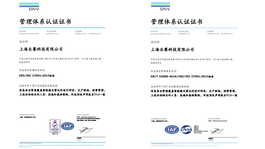 日前,全球信息安全認證權威機構DNV為啟明創(chuàng)投投資企業(yè)禾賽科技頒發(fā)了由UKAS(英國皇家認可委員會)和CNAS(中國合格評定國家認可委員會)雙授信的ISO/IEC 27001:2013信息安全管理體系認證證書,這意味著禾賽科技在信息安全管理體系上的建設和實施均已達到國際標準。作為值得信賴的合作伙伴,禾賽科技能夠為全球頂級汽車客戶提供更安全、可靠的服務。