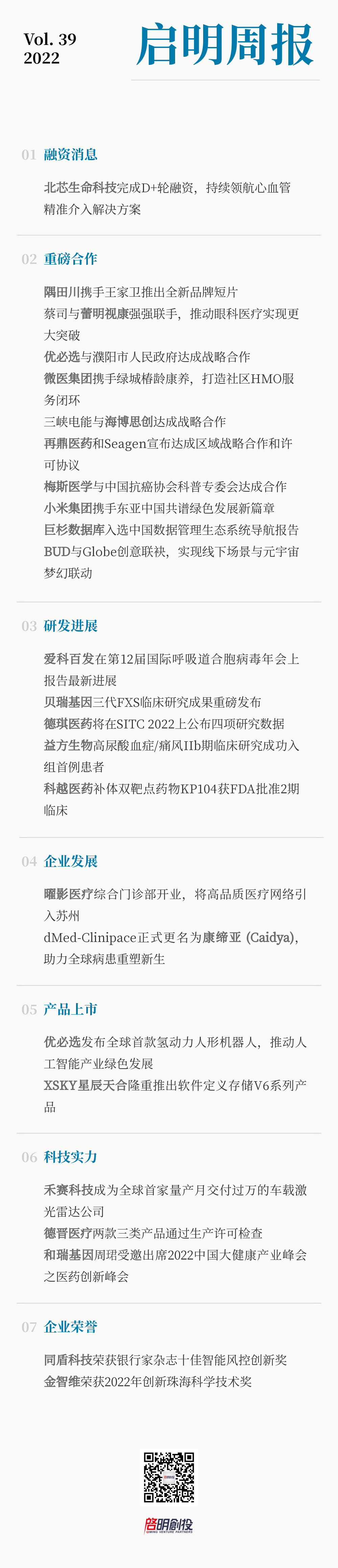 編者按:“啟明周報(bào)”欄目會(huì)在每周定期發(fā)布,盤(pán)點(diǎn)啟明創(chuàng)投投資企業(yè)的融資新聞、發(fā)展動(dòng)態(tài)。