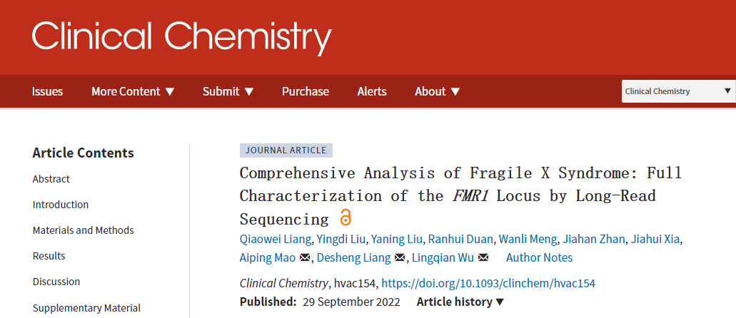 近日,由啟明創(chuàng)投投資企業(yè)貝瑞基因(000710.SZ)提供技術(shù)支持的三代FXS(脆性X綜合征)臨床回顧性研究成果在檢驗(yàn)醫(yī)學(xué)領(lǐng)域排名第一的國(guó)際權(quán)威學(xué)術(shù)期刊Clinical Chemistry在線(xiàn)發(fā)表。這是貝瑞基因基于三代測(cè)序平臺(tái)開(kāi)發(fā)復(fù)雜基因變異疾病診斷新技術(shù)的又一次重大突破。