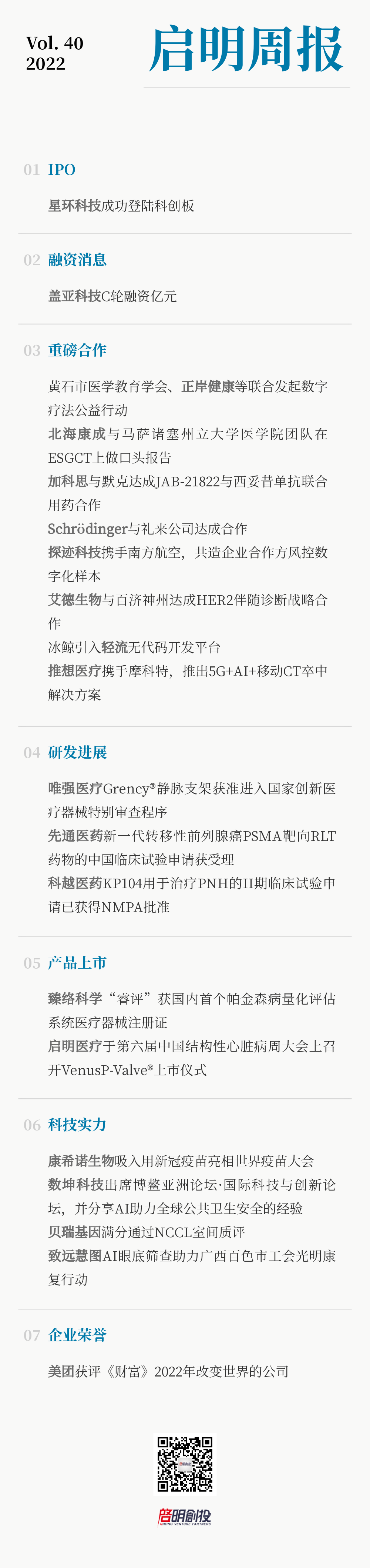 編者按:“啟明周報(bào)”欄目會(huì)在每周定期發(fā)布,盤點(diǎn)啟明創(chuàng)投投資企業(yè)的融資新聞、發(fā)展動(dòng)態(tài)。