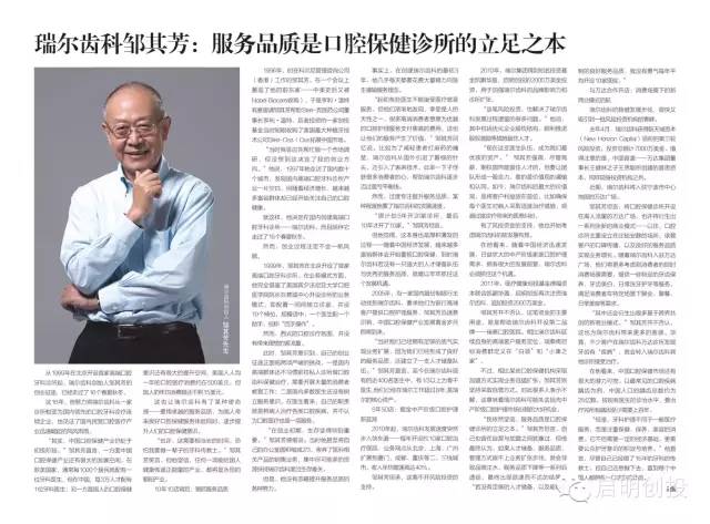 在他看來,隨著中國經(jīng)濟(jì)迅速發(fā)展,日益狀大的中產(chǎn)階級家庭口腔護(hù)理需求,擁有很大的發(fā)展前景,瑞爾齒科必須抓住這個機(jī)遇。
