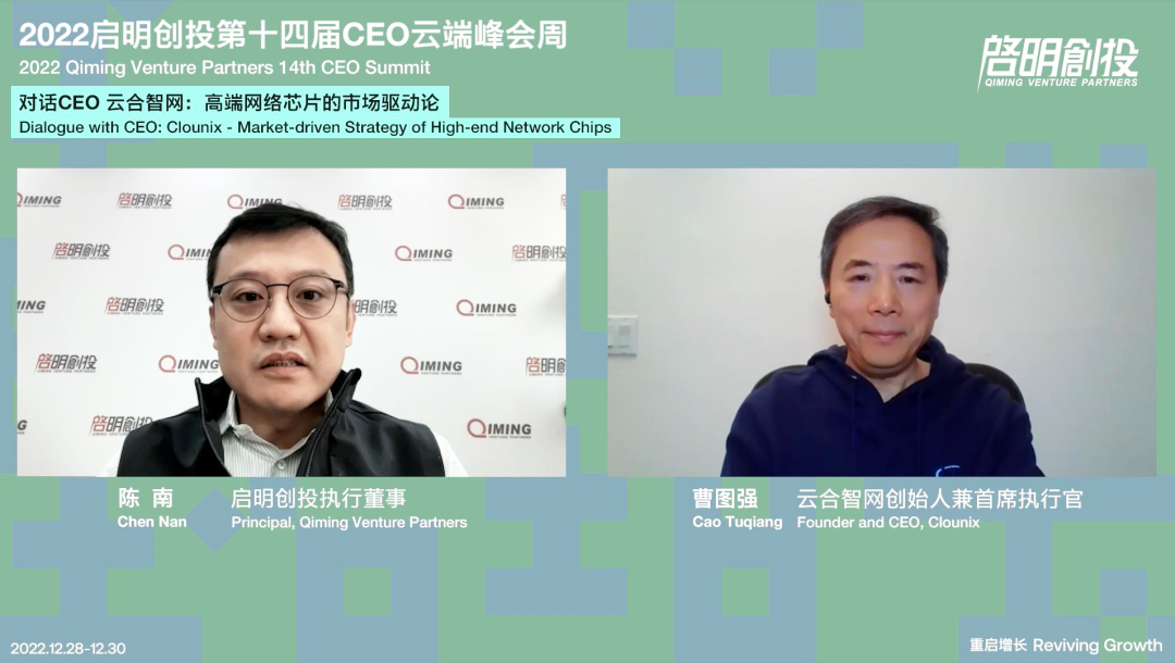 Sharing insights on "Market-driven Strategy of High-end Network Chips", Cao Tuqiang, Founder and CEO of Clounix, introduced the founding process of Clounix and analyzed the differences in building technology startups in China and the US with Chen Nan, Principal of Qiming. As a former global executive of a Fortune 500 company and an entrepreneur, Cao Tuqiang summarized the typical growth path of US hard tech startups and the lessons learned. He pointed out the importance of the market and customers to Clounix, and that Clounix teams will always respect customers' requirements and reflect new changes in different generations of product lines, as it is crucial to seize market opportunities to gain a foothold and expand its market share in China.