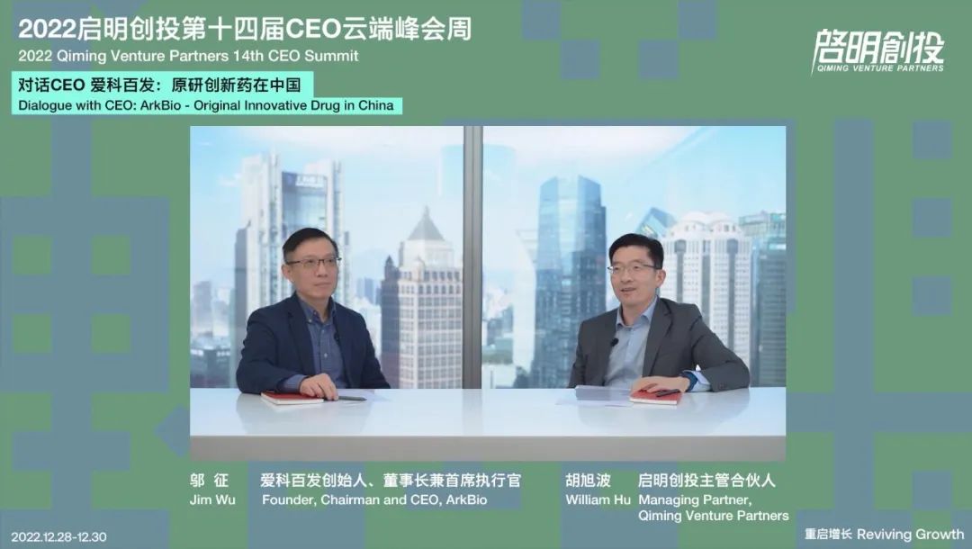 On the topic of "Original Innovative Drug in China", Qiming's Managing Partner William Hu talked to Jim Wu, Founder, Chairman and CEO of ArkBio, who introduced RSV and the founding story of the company and analyzed the advantages of globalization for Chinese innovative drug companies and ArkBio's differentiation strategy. According to Jim Wu, startups must understand and do a better job than big pharma in a certain field to survive and stand out, accomplishing what big companies have not yet done.