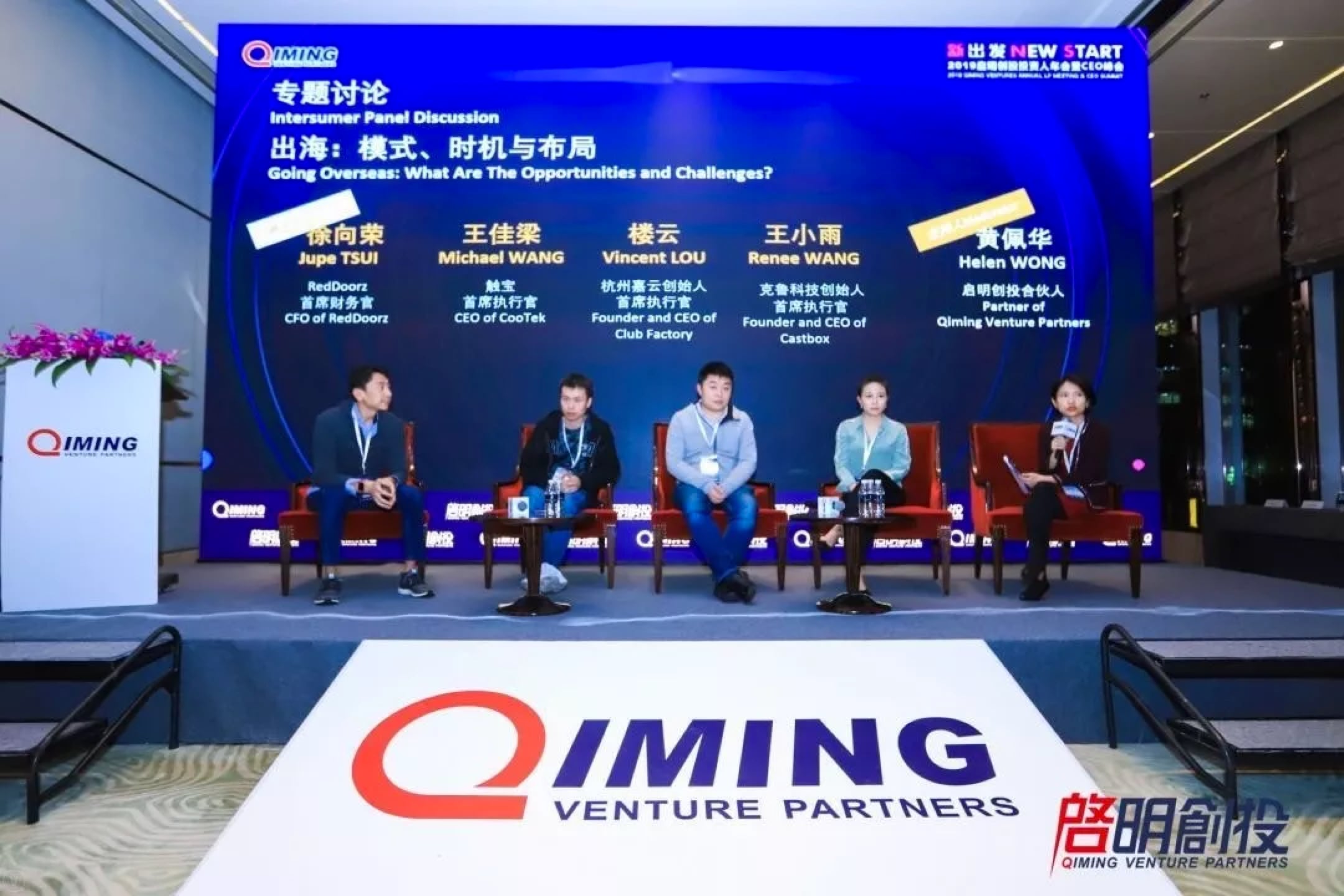 在互聯(lián)網(wǎng)及消費(fèi)專題討論中,圍繞“出海:模式、時(shí)機(jī)與布局”這一主題,主持人、啟明創(chuàng)投合伙人黃佩華對(duì)話克魯科技創(chuàng)始人兼首席執(zhí)行官王小雨,杭州嘉云創(chuàng)始人兼首席執(zhí)行官樓云,觸寶首席執(zhí)行官王佳梁,RedDoorz首席財(cái)務(wù)官徐向榮。