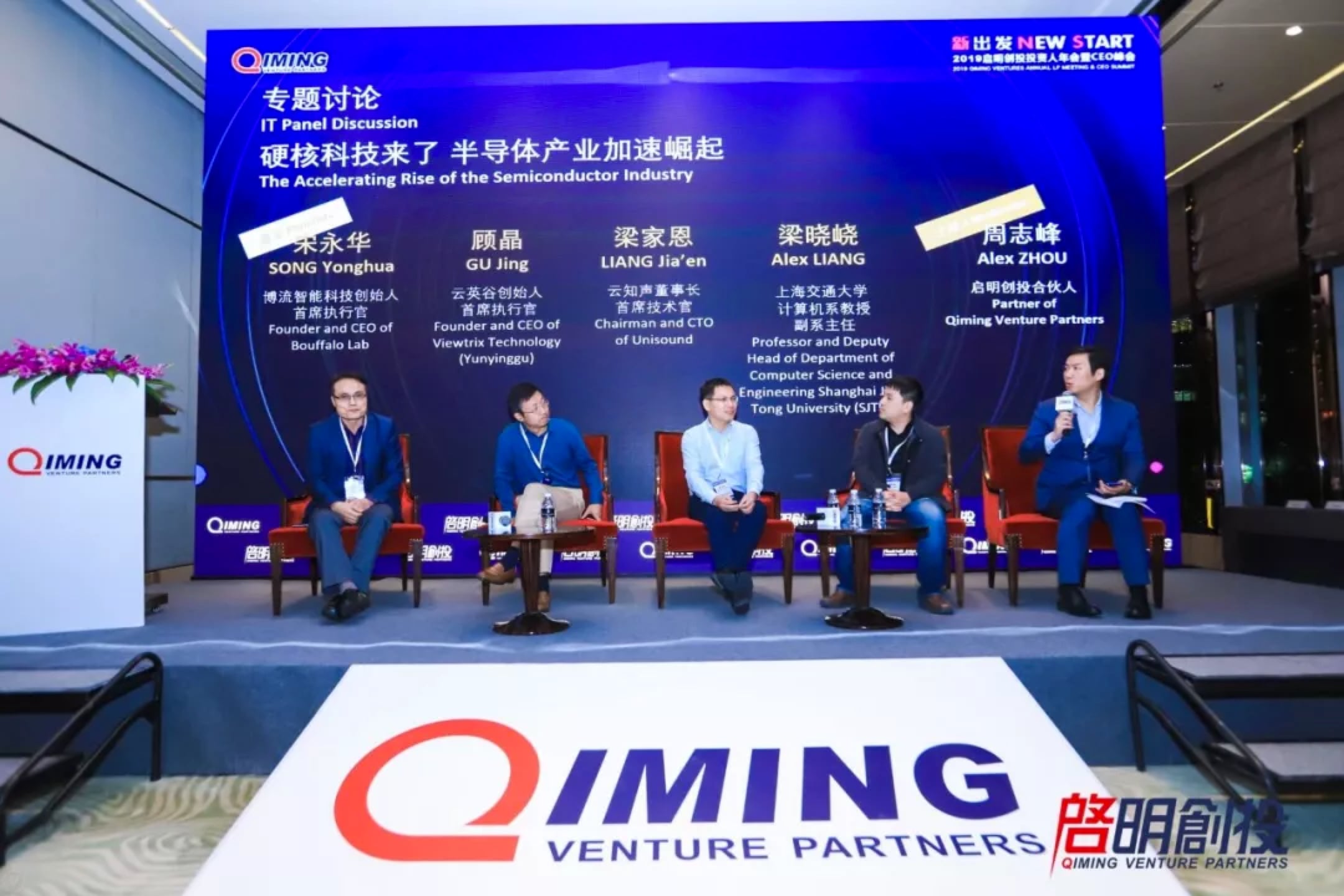 在信息技術(shù)專題討論-硬核科技來(lái)了 半導(dǎo)體產(chǎn)業(yè)加速崛起中,啟明創(chuàng)投合伙人周志峰邀請(qǐng)上海交通大學(xué)計(jì)算機(jī)系教授、副系主任梁曉峣,云知聲董事長(zhǎng)兼首席技術(shù)官梁家恩,云英谷創(chuàng)始人兼首席執(zhí)行官顧晶,博流智能創(chuàng)始人兼首席執(zhí)行官宋永華展開討論。