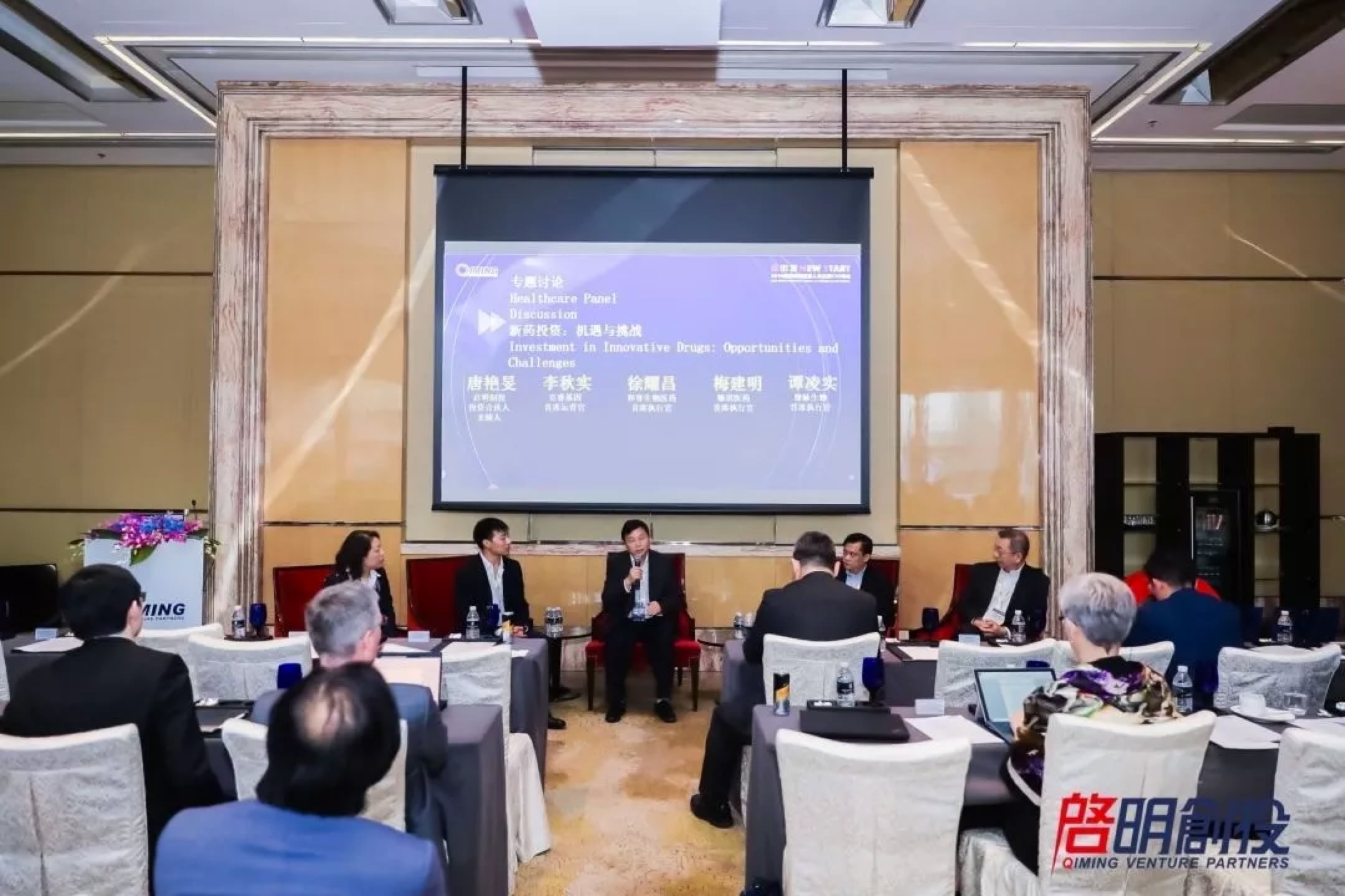 在醫(yī)療健康專題討論中,以《新藥投資:機(jī)遇與挑戰(zhàn)》為主題,主持人、啟明創(chuàng)投投資合伙人唐艷旻對(duì)話克睿基因首席運(yùn)營(yíng)官李秋實(shí)、和譽(yù)生物醫(yī)藥首席執(zhí)行官徐耀昌、德琪醫(yī)藥首席執(zhí)行官梅建明、締脈生物首席執(zhí)行官譚凌實(shí)。